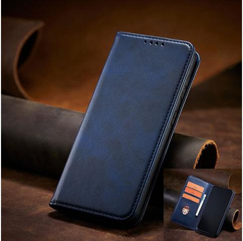 Кожен калъф Flip тефтер Magnetic Book със стойка за Xiaomi Redmi 14C - тъмносин