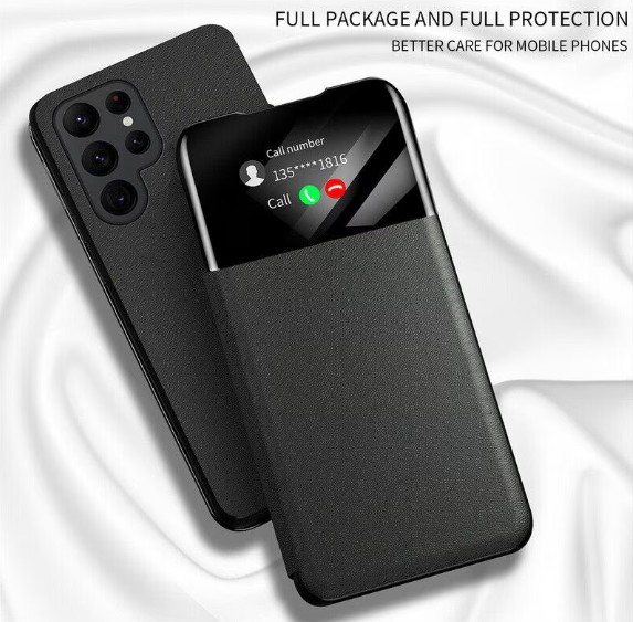 Луксозен кожен калъф Smart View Cover за Samsung Galaxy A03 - черен