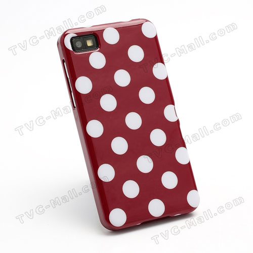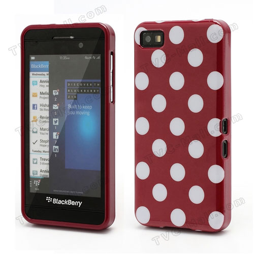 Силиконов калъф / гръб / ТПУ за BlackBerry Z10 - червен на бели точки