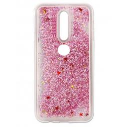 Луксозен твърд гръб 3D за Nokia 6.1 (2018) - прозрачен / розов брокат / звездички